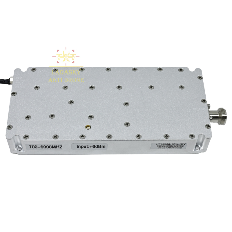 Modulo de RF GaN de 80W 700-6000MHz para controlo de sinal e mitigação de interferências de FPV, DJI e Autel