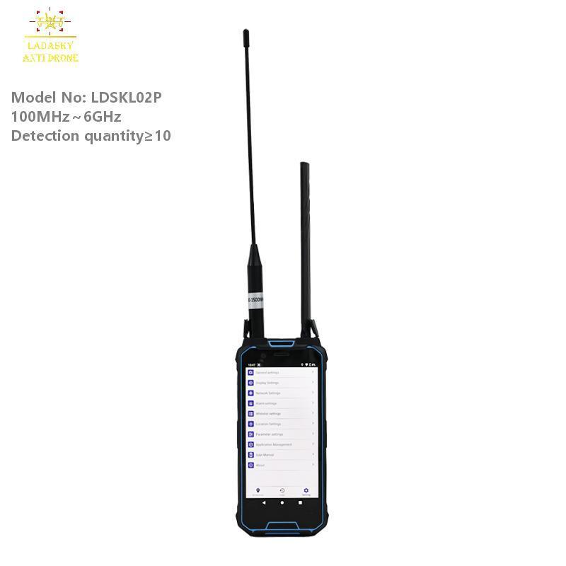 Este detector de drones vestível apresenta uma antena de banda completa ultra-larga (100MHz-6000MHz) com capacidades de som, luz e localização para sistemas anti-drone abrangentes. O dispositivo compacto e portátil integra detecção de espectro de UAV, análise de protocolo e funções de identificação RID.